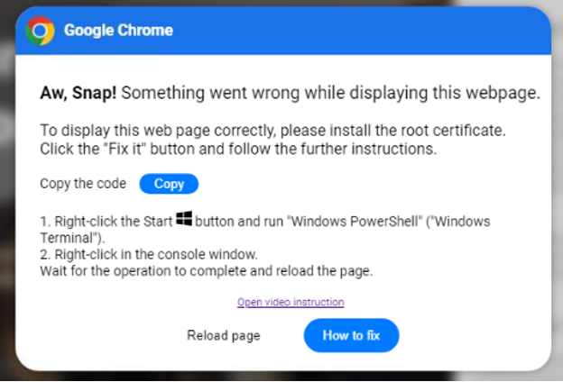 Action: If you see a message on a website that tells you to do this, close out the tab and try the website again.